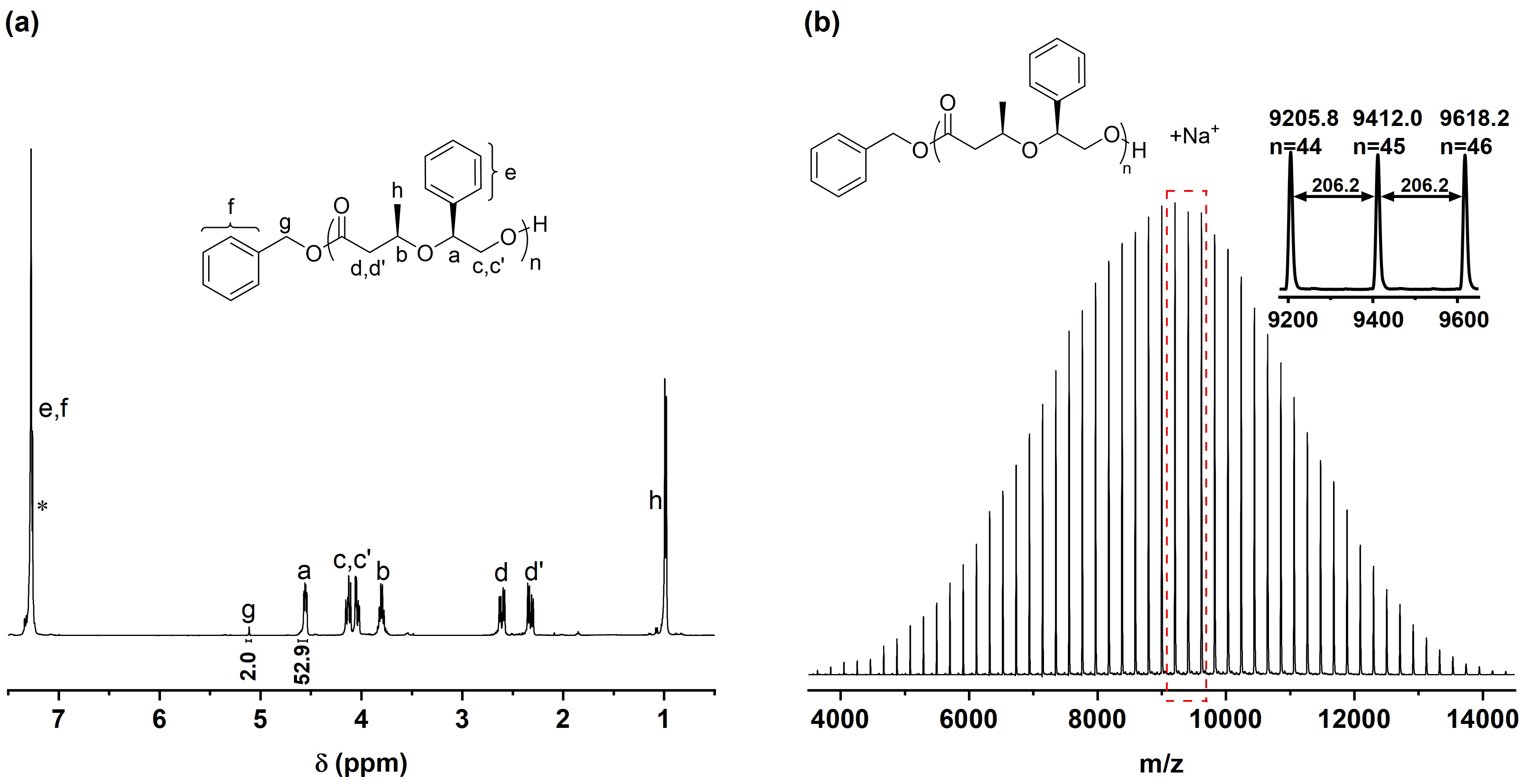 在前期工作的基础上,该团队尝试使用不同单取代环氧化合物来制备聚醚酯,利用环氧化合物侧基的电子效应,实现环氧化合物的区域选择性开环,并制备出互为非对映异构体的氧杂环内酯单体。利用MeAl[salen]/BnOH催化体系实现了单体“活性”/可控的开环聚合,制备出端基结构和分子量可控、窄分布的聚醚酯。