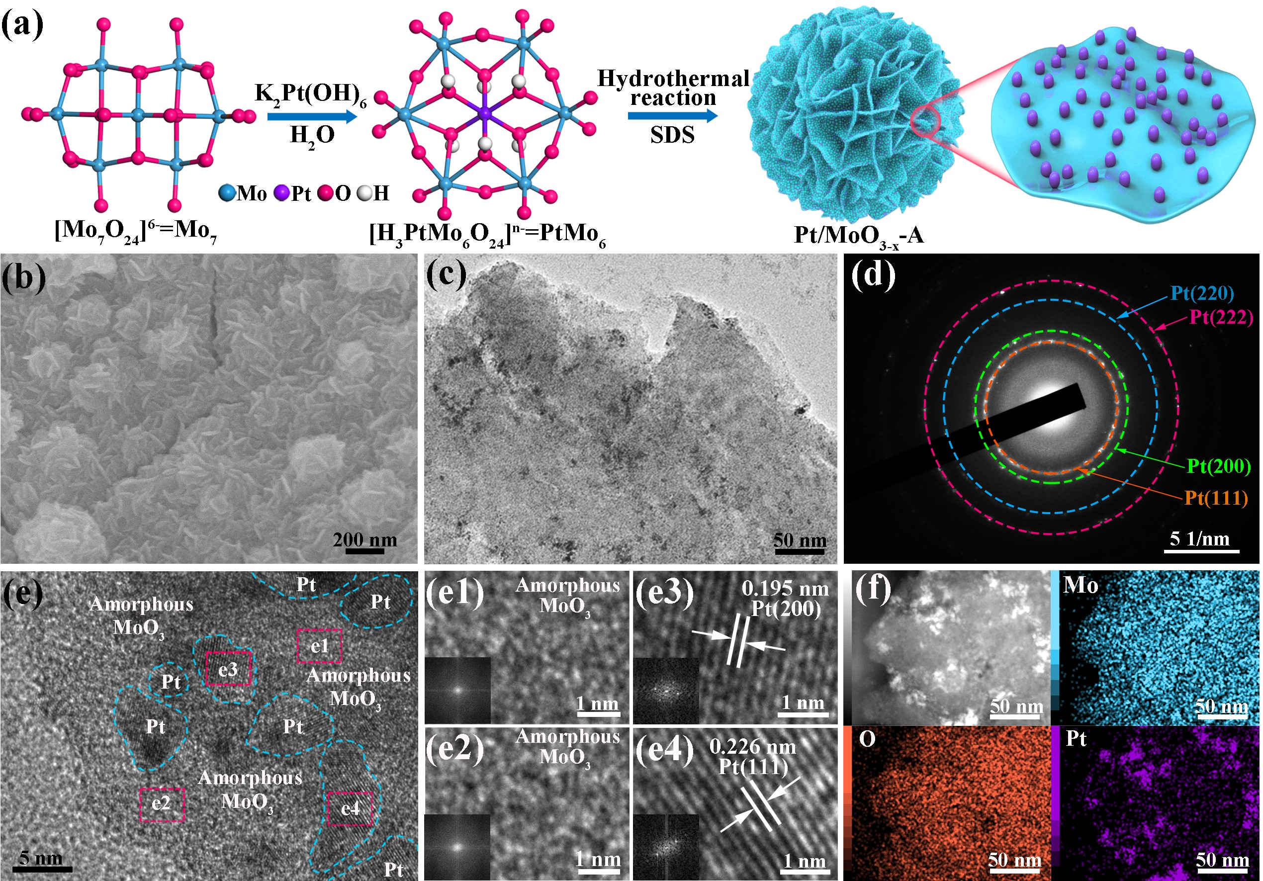 图4晶态/非晶态Pt/MoO3-x催化剂制备与表征