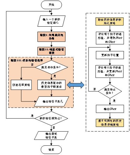 针对流特征选择问题,论文提出了基于动态特征聚类和粒子群优化的流特征选择方法。该方法利用在线相关性分析快速去除不相关特征,初步减少新到达特征组的特征规模;采用增量特征聚类技术将特征组中的冗余特征聚集,缩减后续进化优化算法的搜索空间;基于聚类后的特征空间,利用历史信息驱动的整型粒子群算法搜索最优特征子集。