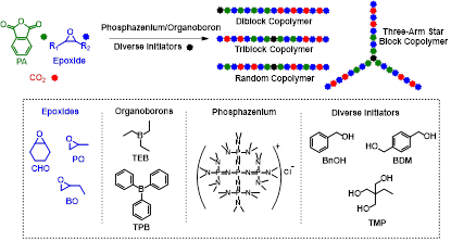 图1. 磷腈盐和有机硼组成的二元催化剂催化环氧/酸酐/CO2选择性三元聚合