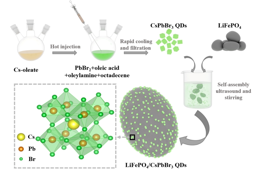 LFP/CPB QDs复合材料的制备过程示意图