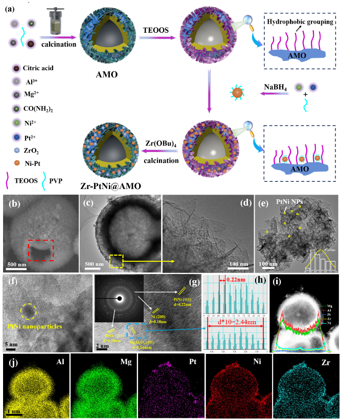 在CO2-CH4重整领域,硕士研究生高永生提出一种疏水驱动策略,成功制得活性位高分散的PtNi合金@Zr掺杂3D空心花状MgAl₂O₄微球催化剂(Zr-PtNi@AMO)。550°C催化反应30小时,Zr-PtNi@AMO的CH4和CO2转化率未明显下降,表现出优异的抗烧结和抗积碳性能。研究发现催化剂独特的抗积碳性能归因于Zr掺杂引入的氧空位,提高了氧的迁移能力,抑制了积碳的生成。此外,Zr掺杂还能够增加碱性活性位点,从而增强对CO₂的吸附与活化能力,加速碳物种的转化。此外,研究发现CH氧化路径的有效能垒比C氧化路径低1.01 eV,这也有助于抑制积碳的形成(Journal of Colloid and Interface Science(2025), doi: https://doi.org/10.1016/j.jcis.2025.01.101)。