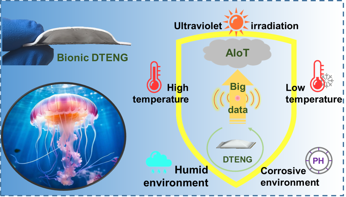 KY开元集团官网高分子科学与工程学院张振秀教授团队,巧妙地利用异向成核发泡效应,实现了TENG的一步法自支撑和自封装设计和制备。团队通过一种创新的环境可持续性一步周边约束发泡方法,开发了一种仿生自支撑自封装穹顶结构摩擦纳米发电机(DTENG),极大地提升了TENG的稳定性和耐用性。在PCF中,压力释放导致泡沫膨胀,周边约束导致泡沫不均匀膨胀,从而形成了宏观穹顶结构。由于自支撑和自封装的结构以及穹顶结构,优化后的DTENG展示出263 V的高开路电压(Voc)和107.7 mW/m2的功率密度。此外,由于其坚固的结构和封闭的构造,DTENG展示出极高的耐用性,可承受60,000次循环,且具有抗紫外线、抗温度和抗腐蚀的性能。特别是,DTENG已通过连续水下运行和车辆碾压后的稳定性测试。基于这些性能优势,DTENG在恶劣环境下的自供电传感方面展现出巨大潜力,并被设计用于实现对水流的自主控制和实时监测。这项工作为高性能且耐用的仿生TENG的可扩展和可持续发展提供了新策略。相关工作以Bioinspired Self-standing and Self-encapsulated Dome Architectured Triboelectric Nanogenerators with Exceptional Stability and Durability为题发表在Advanced Functional Materials(DOI: 10.1002/adfm.202505747)。该成果以KY开元集团官网为第一署名单位,谢一兵博士为第一作者,张振秀教授和郑州大学刘春太教授为通讯作者。