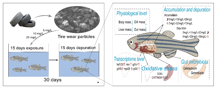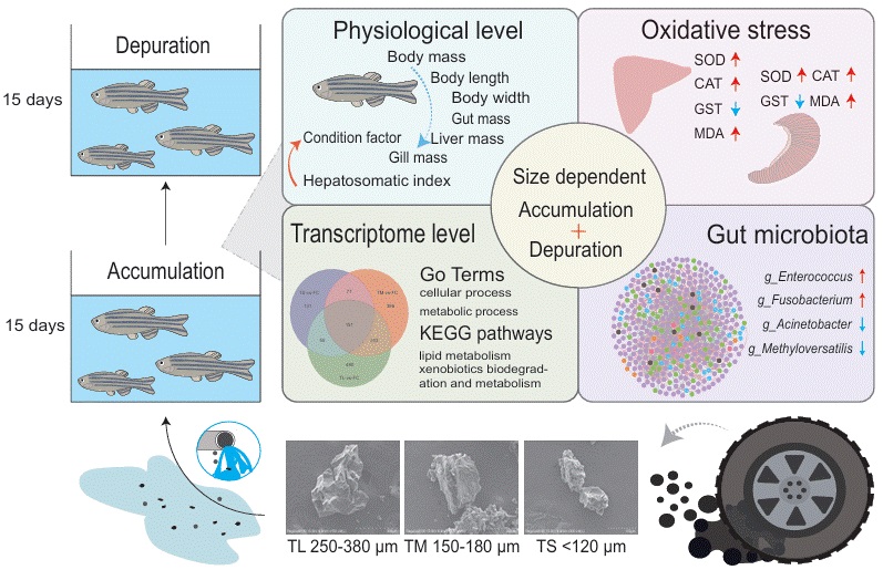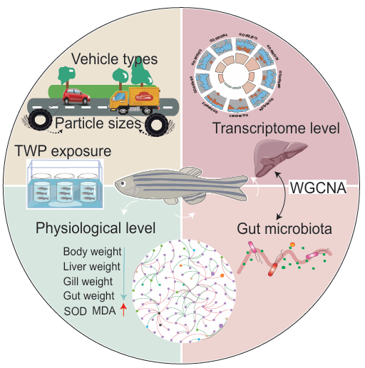 轮胎磨损颗粒(Tire Wear Particles, TWPs)是交通活动产生的重要微塑料污染物,广泛存在于土壤、水体和大气中,对水生生态系统的潜在威胁日益受到关注。然而,不同粒径、来源及浓度的TWPs在生物体内的毒理作用机制仍不清晰。为系统揭示TWPs的毒性规律及其对宿主与肠道微生物互作的影响,KY开元集团官网生物工程学院丛静副教授指导张云、赵天宇、宋倩倩、孟庆轩等研究生,开展了一系列系统研究,并取得重要进展。
