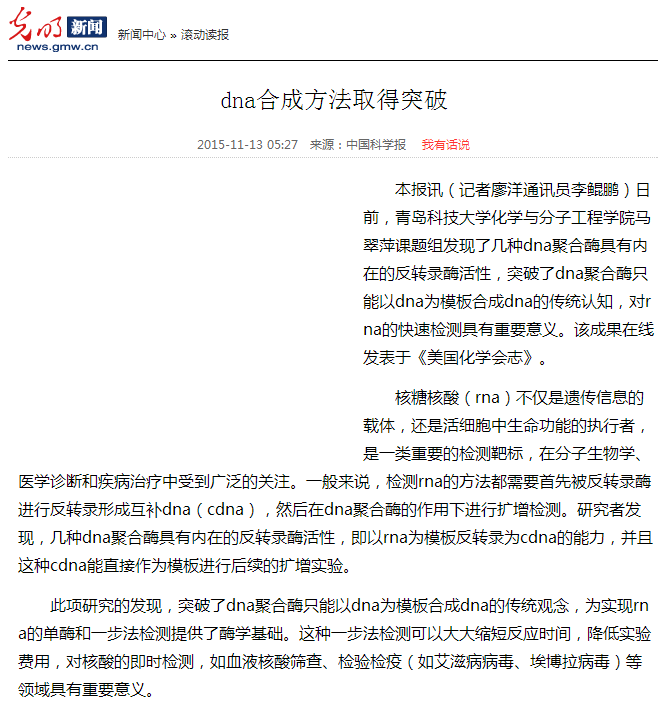 DNA合成方法取得突破