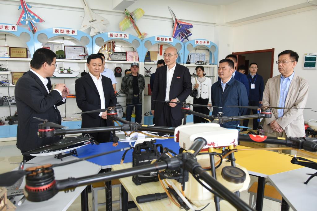 刘玉光一行考察了创新创业教育学院“三创中心”的工坊、智慧教室和大学生创业孵化基地。创新创业教育学院常务副院长褚庆柱汇报了“三创中心”建设情况。