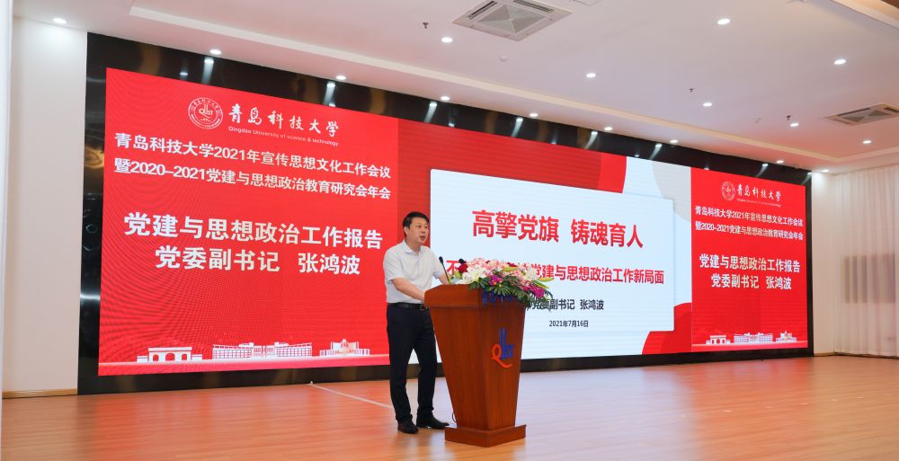 党委副书记张鸿波在会上作了题为《高擎党旗铸魂育人不断开创学校党建与思想政治工作新局面》的工作报告。报告从强化使命担当,用党的创新理论成果武装头脑;坚持强基固本,筑牢坚强战斗堡垒;推动改革创新,提升思政教育亲和力;加强联动融合,构建一体化舆论工作格局;深化内涵提升,大力创建特色校园文化品牌五个方面对近两年学校党建与思想政治工作作了全面总结;从深入学习贯彻习近平新时代中国特色社会主义思想;精心组织开展党史学习教育;着力加强党的建设,以高质量党建引领高质量发展;全力构建思想政治工作“三全育人”新格局;不断提高学校社会知名度、美誉度等五个方面对下一步学校党建和思想政治工作作了安排部署。