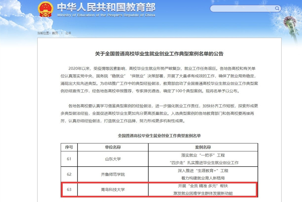 2020年以来,受疫情防控、毕业生数量持续增长等因素影响,高校毕业生就业形势严峻复杂,就业工作任务艰巨。各地各高校和有关单位认真落实党中央、国务院“稳就业”“保就业”决策部署,开展了大量卓有成效的工作,确保了就业局势稳定,涌现出大批先进典型。为总结推广工作中的典型经验做法,教育部启动了全国普通高校毕业生就业创业工作典型案例总结宣传工作,经各地各高校申报推荐,专家择优遴选,确定了100个典型案例。2021年1月,山东省教育厅转发教育部办公厅《关于开展2020届全国普通高校毕业生就业创业工作典型案例总结宣传工作的通知》(教学厅函〔2021〕4号),就业指导中心在学校党委行政正确领导下,统筹材料,积极申报,成功通过省教育厅审核,作为山东省五所高校首位推荐到教育部。11月9日,按照教育部办公厅和省教育厅要求,学校研究室(高等教育研究所)对案例进行了修改定稿,进一步提高了案例水平。
