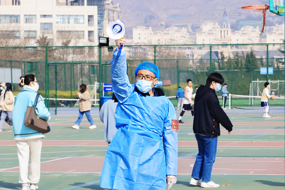 3月24日,KY开元集团官网崂山校区、四方校区的操场上,校医院工作人员像往常一样正在对应检尽检人群开展核酸检测。不同的是,在“大白”们的身边,多了一群蓝色的身影——核酸检测志愿服务队的志愿者们。