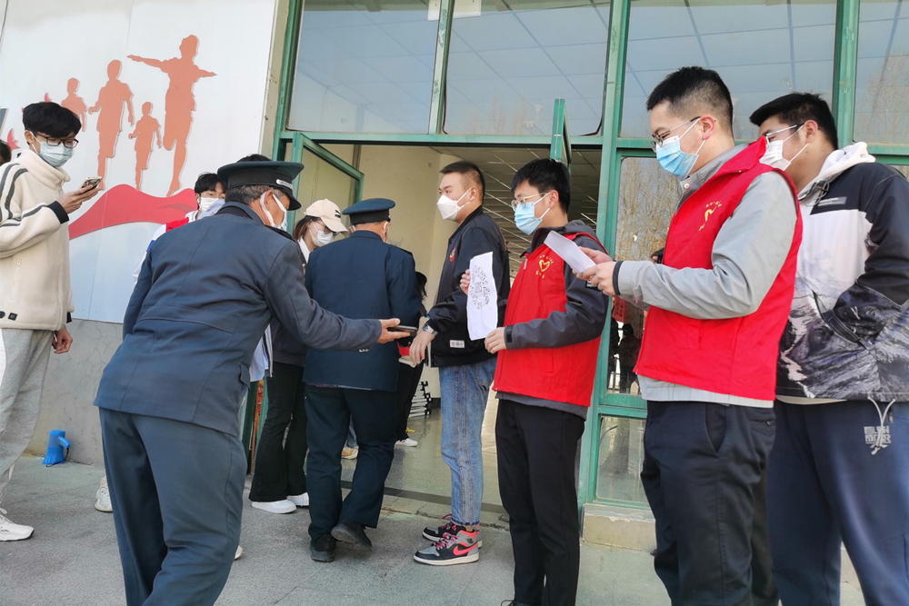 针对需要参加研究生复试、受伤等特殊情况的学生,志愿者们积极协调其他同学,优先让有特殊情况的同学先进行检测。他们在维持秩序、积极防控的前提下,用无微不至的爱心呵护着前来的学生。