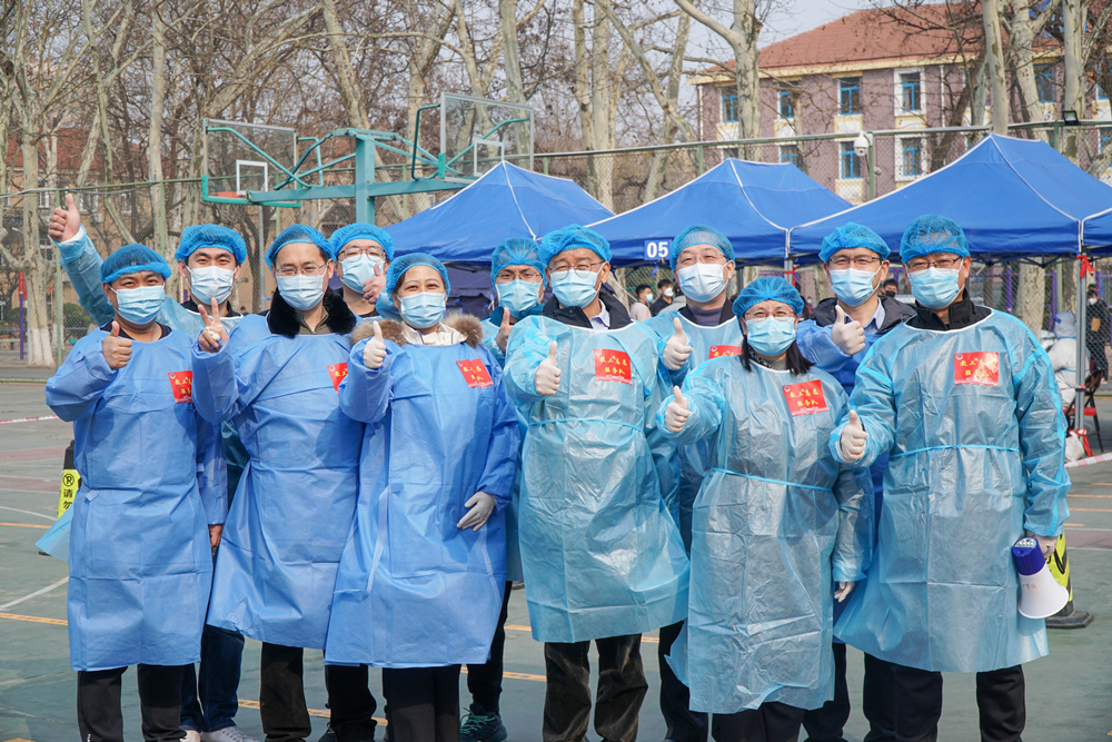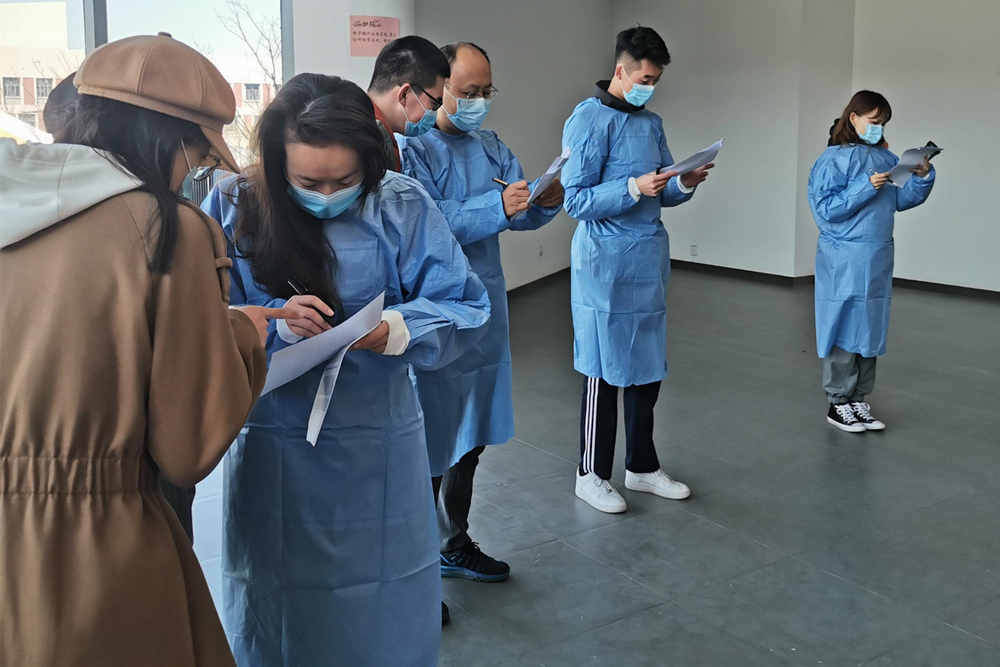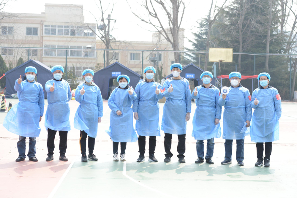 党委组织部第一时间向全校党员发出“党员先锋勇担当 战‘疫’一线党旗红”的倡议书。消息一经发布,党员同志纷纷响应报名,许多驻校干部、普通教师也积极参与。根据工作需要,学校迅速成立了“核酸检测”“陪医”“健康观察区”“定点巡逻”“督导志愿”“崂山商贸”6支志愿服务队,服务在防疫战场的各个角落,成为校园里最亮丽的风景线。
