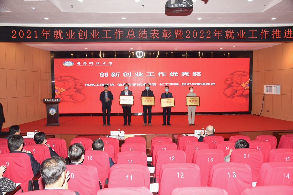 党委常委、组织部部长聂法良宣读了关于表彰2021年度就业创业工作先进单位和个人的决定,并为获2021年度创新创业工作优秀奖的单位颁奖。党委常委、统战部部长张洪坤为2021年度就业工作先进个人颁发证书。