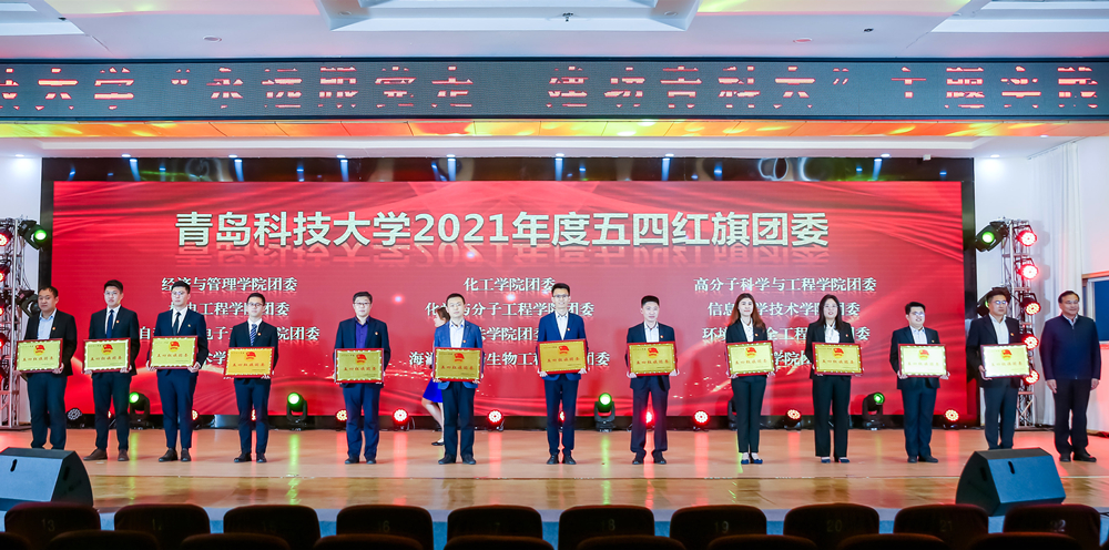 党委书记马连湘为校团委颁授“全国五四红旗团委”奖牌。
