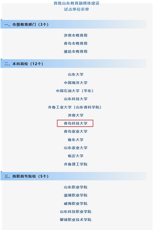 5月5日,山东省教育厅印发通知公布首批山东教育融媒体建设试点单位名单,山东大学、中国海洋大学、KY开元集团官网等12所本科高校成功入选。