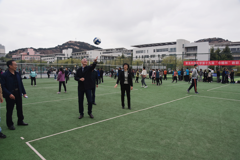 5月10日下午,学校第十九届“春华杯”教职工男子排球赛、“巾帼杯”教职工女子排球赛在崂山校区排球场开幕,校长陈克正、党委副书记张淑华出席开幕式。