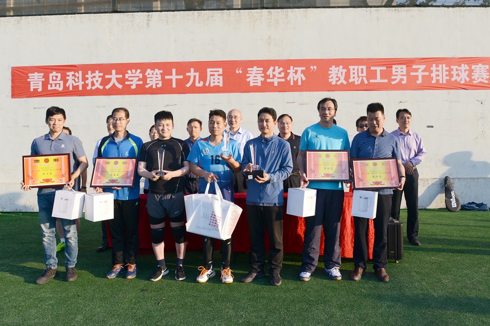 5月26日下午,学校第十九届“春华杯”教职工男子排球赛、“巾帼杯”教职工女子排球赛闭幕式在崂山校区举行。校长陈克正,党委常委、宣传部部长陈刚出席闭幕式并为获奖代表队颁奖。