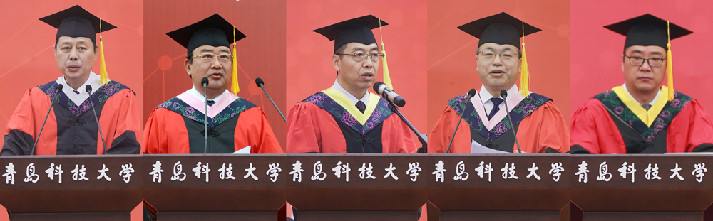 经管学院吕承超、化学院高洪涛、高密校区化工系王许云作为教师代表发言,化工自动化与仪表专业1977级校友、国家级高层次创新领军人才冯恩波,橡胶工程1992届校友、青岛泰凯英轮胎有限公司董事长王传铸,塑料工程1994届校友、海泰科模塑科技有限公司董事长孙文强代表校友发言,向学弟学妹们传授了工作经验与体会,并为同学们顺利完成学业表示祝贺,表达美好祝愿。毕业生代表在献词中深情回顾了在学校生活学习的点点滴滴,表达了对母校、老师、同学的依依惜别之情与美好祝福。