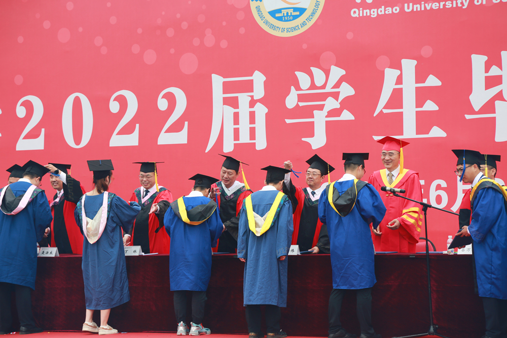 党委副书记张鸿波宣读了《关于授予毕业生学位的决定》。党委常委、副校长丁林宣读了《关于表彰优秀研究生学位论文指导教师及研究生的决定》《2022届毕业生“我最喜爱的老师”名单》《关于表彰2022届优秀毕业生的决定》《基层就业毕业生名单》。各校区毕业典礼分别由副校长李勇、吕万翔、李志波主持。与会领导一同为山东省优秀毕业生代表、基层就业毕业生代表、校级优秀学位论文获奖研究生、“我最喜爱的老师”代表、校级优秀学位论文指导教师颁发奖牌和证书;为毕业生授予学位,拨正流苏。