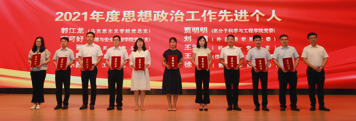 党委常委、副校长吕万翔在会上宣读了表彰文件。校党委领导班子成员分别为2021年度“红旗”基层党组织、“五好”党支部、优秀党务工作者、优秀共产党员、思想政治工作先进集体和个人颁奖。会议还对2021年度新闻宣传先进单位和个人、优秀网站、最具影响力微信公众平台、党建与思想政治教育研究会优秀论文等进行了表彰。