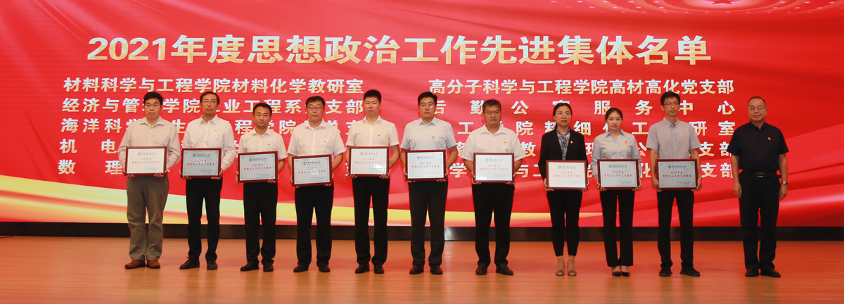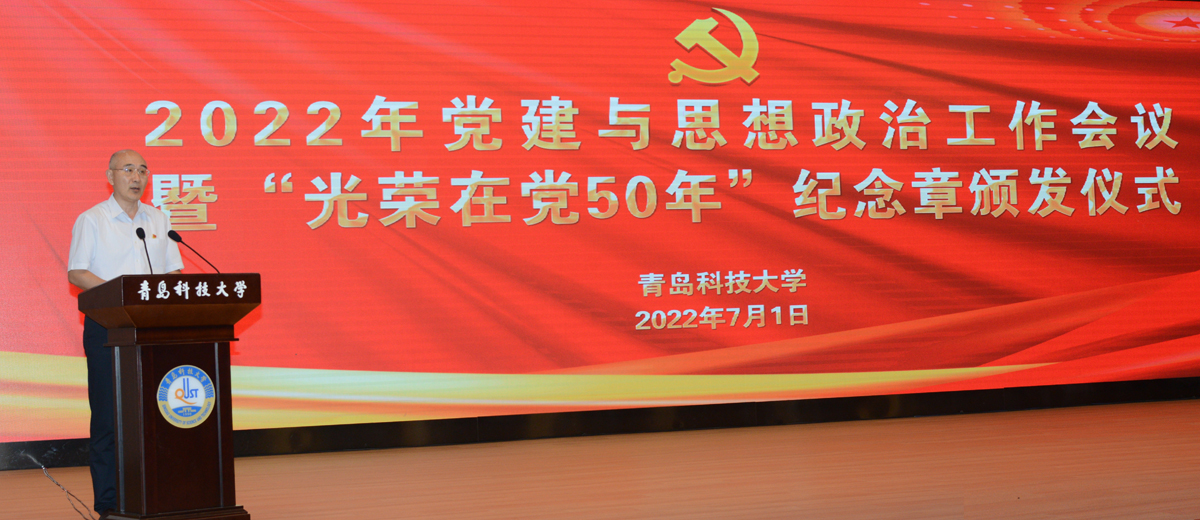 在中国共产党成立101周年之际,7月1日下午,学校在崂山校区第二报告厅举行2022年党建与思想政治工作会议暨“光荣在党50年”纪念章颁发仪式。校党委领导班子成员李兴伟、陈克正、李勇、吕万翔、丁林、张洪坤出席会议。