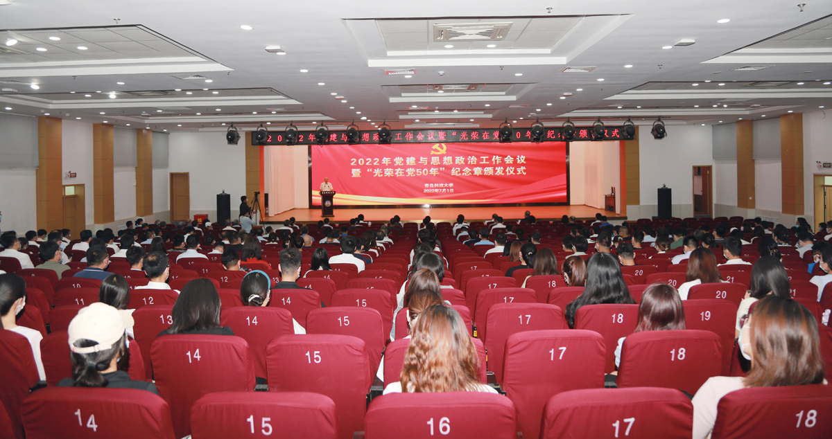 “光荣在党50年”老党员代表,机关部门负责人,院级党组织书记、院长、副书记,基层党支部书记、思政课教师、辅导员、学生党员代表等参加会议。