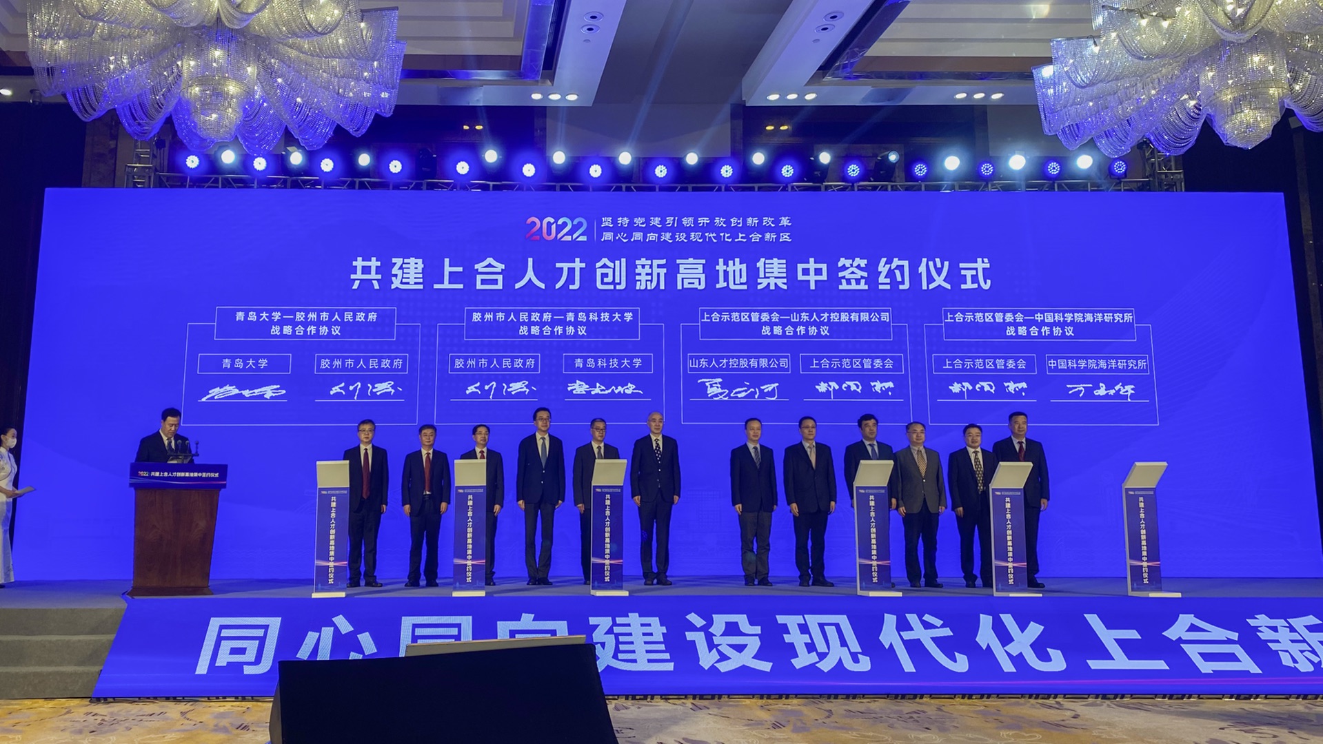 7月6日,上合示范区、胶州市联合相关单位举行了“共建上合人才创新高地”集中签约仪式,校长陈克正,党委常委、副校长李志波受邀出席签约仪式。