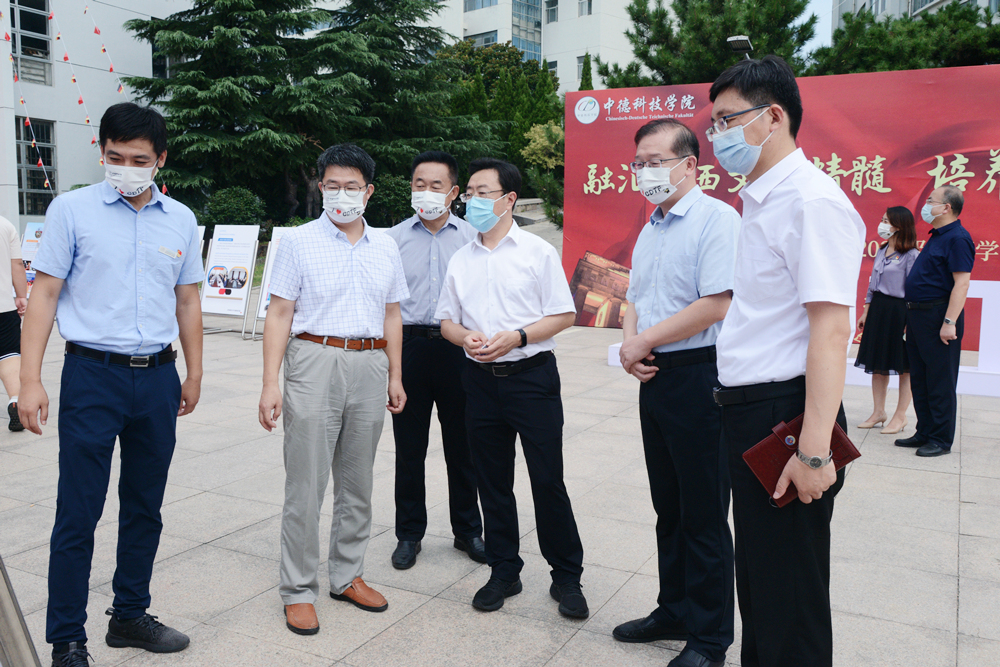 校领导李兴伟、陈克正、李勇、沈文青、丁林、刘明永、罗细亮分别来到崂山、四方、高密、中德四校区迎新现场,与在现场办理报到手续的新生亲切交流,向他们表示欢迎,并寄语他们尽快适应大学学习生活,科学规划、刻苦钻研、勇于实践,努力成长为德智体美劳全面发展的时代新人。