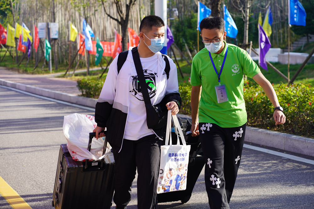 为切实做好2022年迎新工作,热情、温暖、快捷地把新生迎进来,科学、高效、精准地把新生安顿好,学校坚持以学生为本,分别在青岛站、青岛北站、四方长途站设置接站点,在各校区大门口设立“新生接待站”,安排25辆大巴车、10辆摆渡车接送新生,4000余名志愿者(累计服务时长超过1万小时)帮助新生办理报到手续、搬运行李,实现从校外到校内的无缝衔接。开设“绿色通道”和资助政策咨询点,宣传国家和学校各项资助政策,学校还为特困新生发放了装有生活用品、学习用品、防疫用品的“爱心大礼包”,让新生切实感受学校关怀与温暖。借助信息化平台简化宿舍登记手续,优化入驻流程,发放卧具近4000套,印发《学生公寓入住须知》,帮助新生尽快适应大学生活。