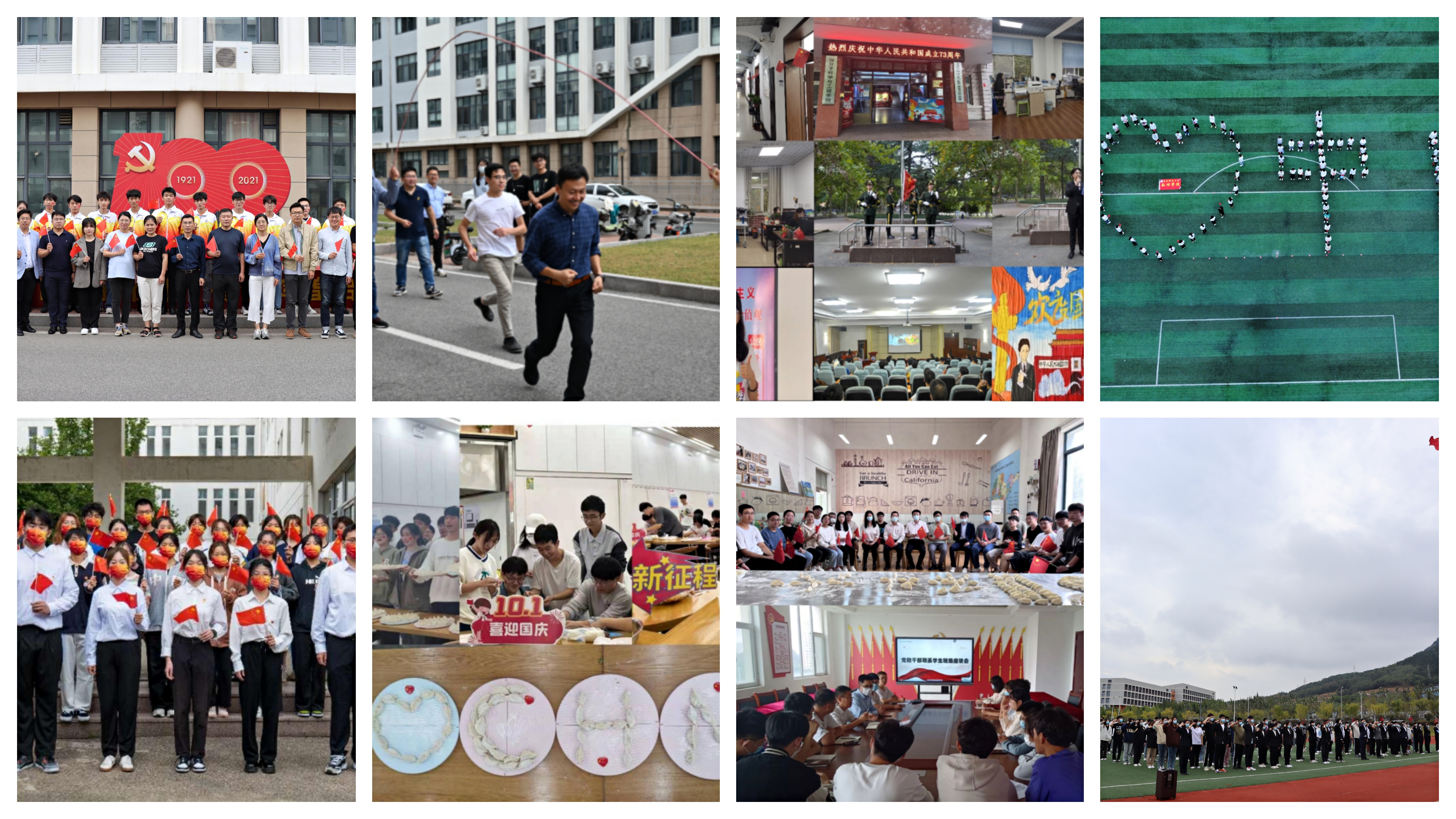 化工学院通过开展学生喜闻乐见活动,走访宿舍等形式加强对学生的关心关怀,为祖国母亲庆生。举行《青春同心,永跟党走》主题演讲及重温入党誓词活动;组织学生进行10.1公里爱国助力长跑,锻炼强健体魄;摆出“中国”“73”造型,齐声高唱《歌唱祖国》等歌曲,花式告白祖国。在演讲、运动与歌声中传递对祖国的祝福,表达对祖国的无限热爱和美好祝愿。