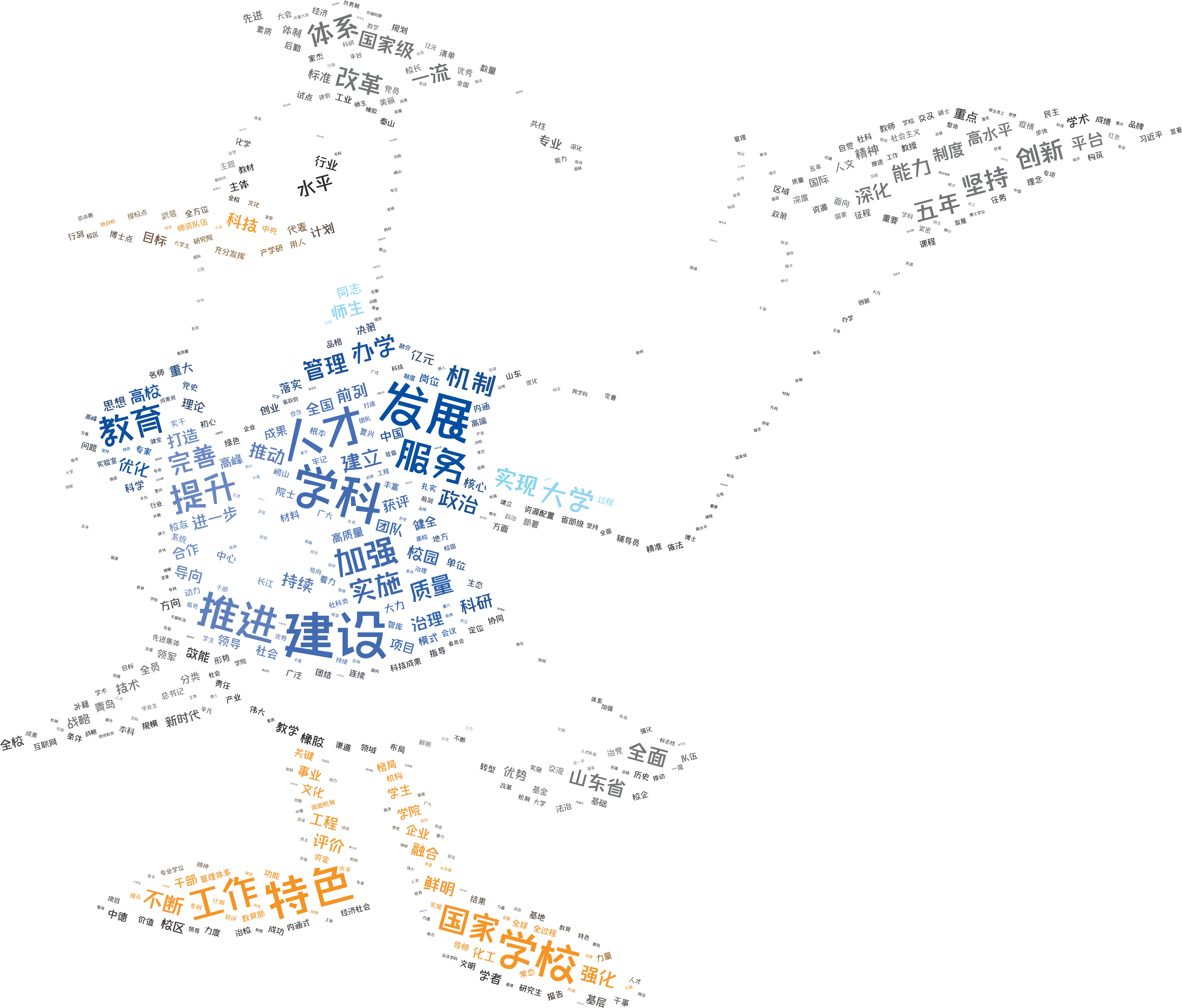 学校第十一次党代会已经胜利闭幕,为帮助全校师生更好地学习把握党委工作报告,我们利用大数据分析中的文本分析(挖掘)技术,对报告文档通过计算机自然语言处理、数据可视化展示,揭示出在非结构化文本信息中的人物、事件、时间、地点等内容,从而提供对报告全新层面的解读。