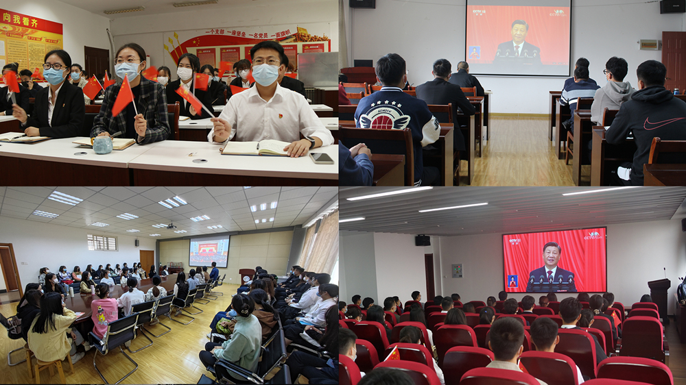 与此同时,全校各基层党组织、团学组织通过集中收看和分散自主收看相结合的方式收听收看党的二十大开幕会,认真聆听、学习习近平总书记所作的报告。