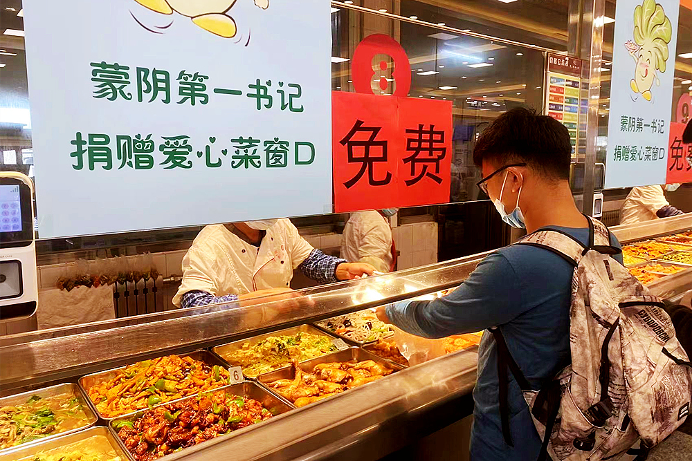 四方校区严格按疫情防控要求对物资进行了消杀,将捐赠水果第一时间分发到一线工作人员手中,大白菜交由四方饮食服务中心加工制作,在食堂开设“蒙阴第一书记爱心捐赠菜窗口”,以免费菜的形式供应给在校师生。爱心菜热气腾腾,苹果甘甜可口,获得了师生的普遍好评。