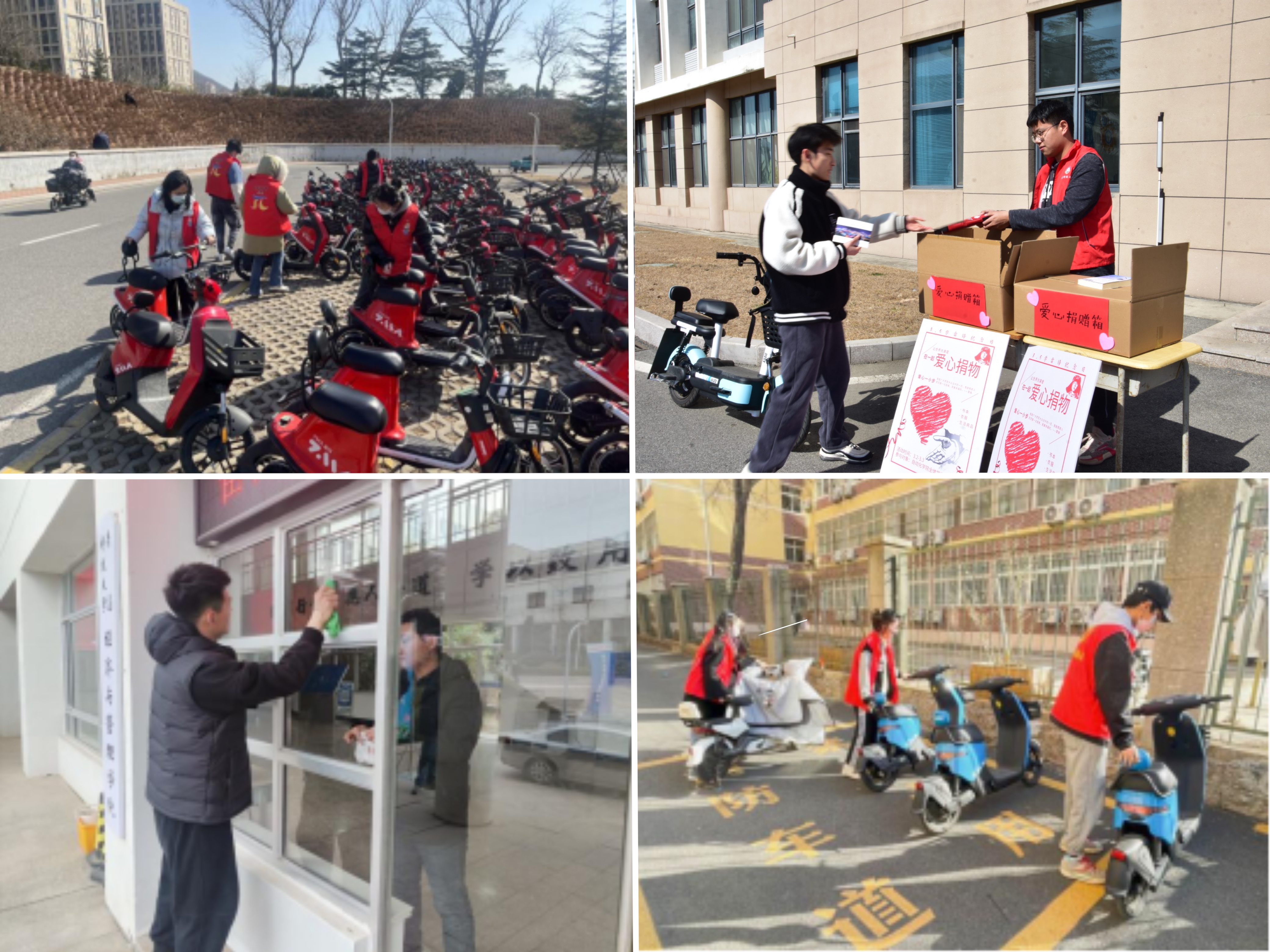 校团委、校学生会、校研究生会举行“习近平总书记关于雷锋精神的重要指示精神专题学习会”,海洋学院团委开展“传承雷锋精神 争做时代新人”雷锋精神大家谈座谈会,外国语学院团委开展学习雷锋以及党的二十大精神宣讲活动,多措并举引导青年学生原原本本、逐字逐句学习习近平总书记关于雷锋精神的重要指示精神,营造全员学雷锋的良好氛围。校学生会、法学院团委开展“爱校荣校”校园清洁活动,信息学院团委组建“学雷锋”志愿服务队,开展卫生清洁、电动车整理等劳动实践,中德科技学院团委开展“践行雷锋精神 弘扬时代新风”学雷锋主题活动,组织青年志愿者打扫教学楼公共区域、教室卫生,营造干净、整洁的校园环境,体育学院团委以团支部为单位组织了“校园是我家,维护靠大家”系列活动,携手为建设美丽青科大贡献力量。经管学院团委组织暖心愿爱心公益协会联合学校青年志愿者联合会开展“献血屋”献血活动,用热血凝聚爱心、传递力量。高分子学院团委组织开展“学雷锋·永橡尚”主题团日活动,通过诵读雷锋日记、宣讲雷锋事迹、观看主题电影,带领青年学子走近雷锋,了解雷锋,将雷锋精神镌刻在新时代大学生心灵深处。数理学院团委发布“学习雷锋精神,争做时代新人”倡议书,引导青年学生积极参与“四个一”活动:参与一项志愿服务、进行一次读书分享、续写一篇“雷锋日记”、完成一个文化作品。自动化学院团委开展“凡尘有星,与爱同心”学雷锋爱心捐赠活动,面向全体自动化学院学生募捐闲置书籍、干净衣物及生活用品,募捐所获书籍、文具将用于“希望小屋”建设。化工学院团委组织开展“让共享电车回家”雷锋精神公益活动,将乱停乱放的电动车运送回指定区域,为同学们提供干净整洁的校园环境。传媒学院团委召开学雷锋活动动员大会,号召广大青年学习雷锋精神,把雷锋精神内化于心,外化于行。艺术学院团委立足专业特色,开展“雷锋精神伴我成长”海报设计大赛,用青年学生喜闻乐见的方式开展雷锋精神学习。中德校区团委开展“榜样的力量”主题宣讲,青年志愿者结合自身实际分享了自己对雷锋精神时代内涵的理解。化学院团委组织学生会开展“学雷锋树新风”志愿服务活动,通过摆放共享电动车、打扫校园卫生践行学生会“全心全意服务同学”的宗旨。高密校区团委积极为学生纾困解难,提供考研复习场所、协助调试复试设备、保障安静复习环境,多措并举助力2023届毕业生考研复试。
