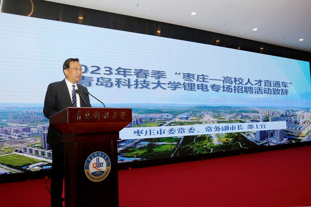 推介会上,党委常委、副校长吕万翔代表学校致欢迎辞。邵士官介绍了枣庄市的文化历史与产业状况。枣庄市委组织部副部长陈淑华推介了枣庄市引才优惠政策;枣庄市能源局党组书记、局长刘忠波介绍了枣庄市锂电发展情况及人才需求。部分用人单位介绍了单位具体情况和招聘计划。