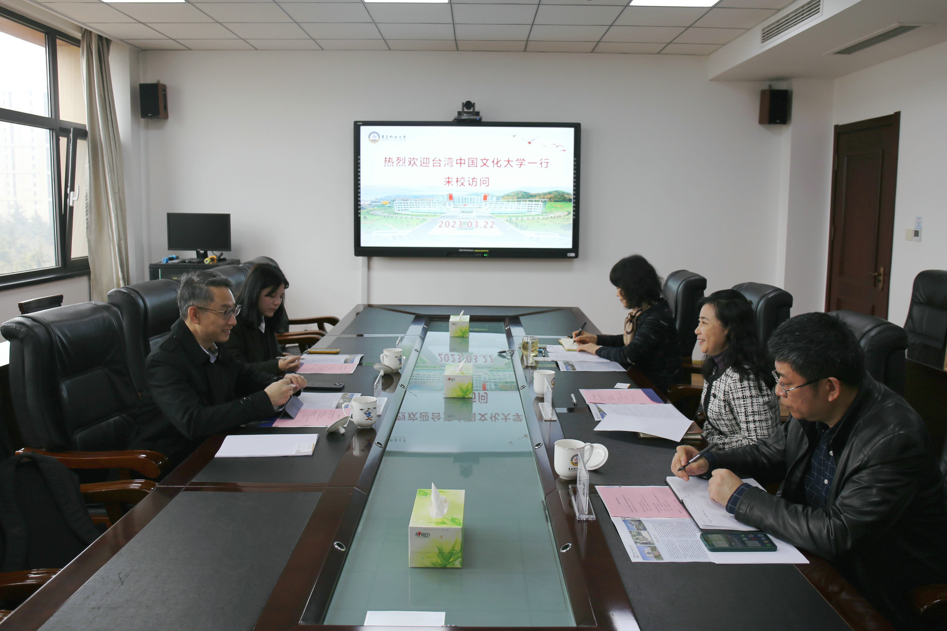 3月22日,台湾中国文化大学国际暨两岸合作部部长蔡佳麟一行来校访问交流。校党委副书记沈文青会见了来宾。