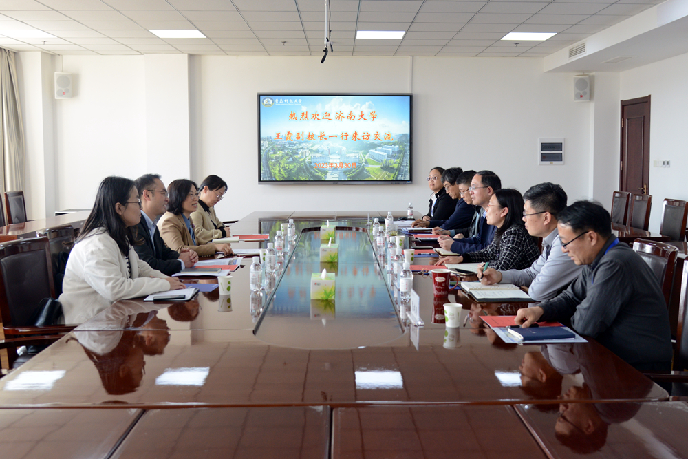 3月30日下午,济南大学党委常委、副校长王霞一行来校交流访问。交流座谈会在崂山校区综合服务楼3015会议室举行,学校党委常委、副校长罗细亮出席活动,会议由教务处处长马翠萍主持。