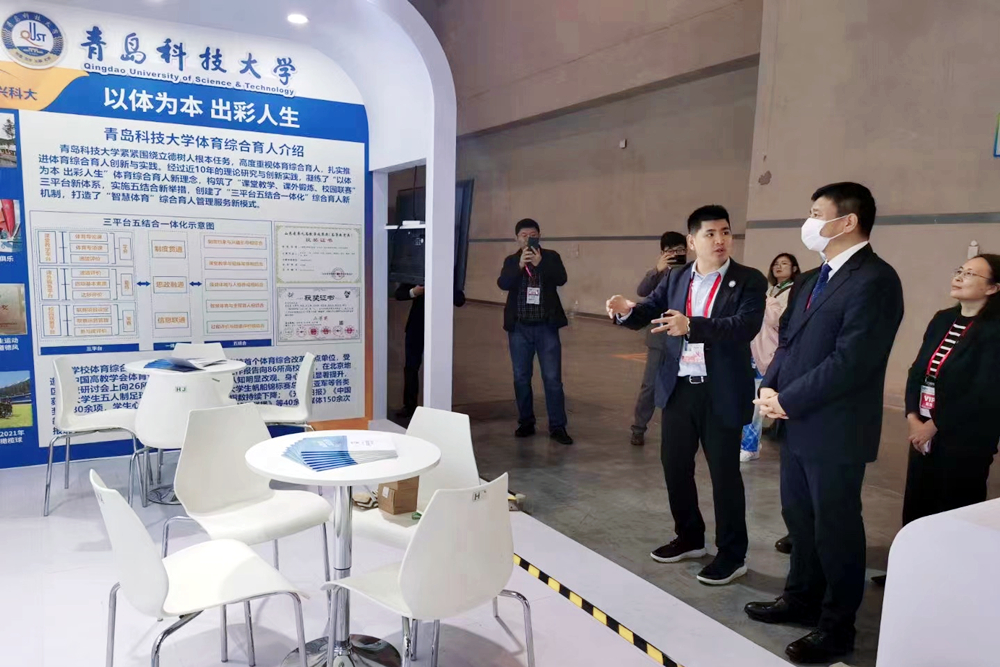 学校高度重视本次参展,精心设计了参展方案,充分展示了学校历史沿革、办学实力和政产学研融合特色,特别是专题介绍了学校“以体为本、出彩人生”三平台五结合一体化体育综合育人的典型经验和做法成效。