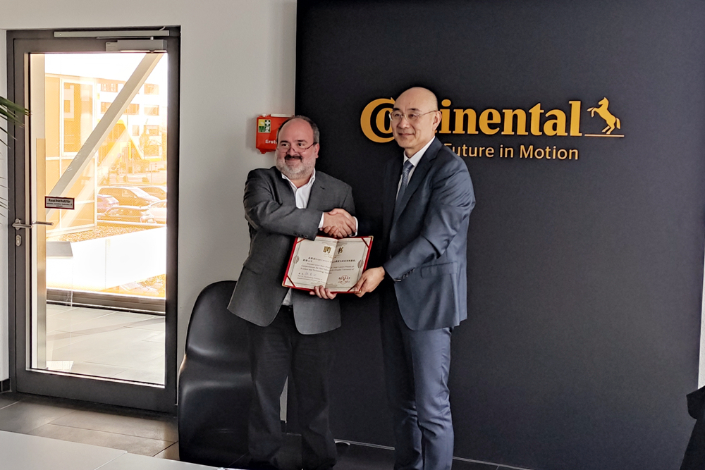 访问德国大陆集团期间,代表团与集团轮胎全球研发高级副总裁鲍里斯·梅戈尔博士和材料评估专家组主任乔治·拉卡约-皮内达教授会谈。双方对前期合作给予充分肯定,并在新材料研发、工艺及测试方法改进方面开展科研合作并依托研发项目联合培养博士研究生达成共识。会谈后,举行了续聘乔治·拉卡约-皮内达教授为KY开元客座教授仪式。代表团还参观了材料研发评估实验室。