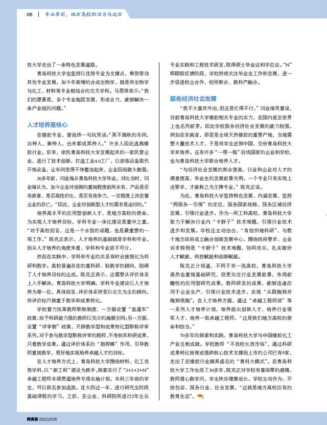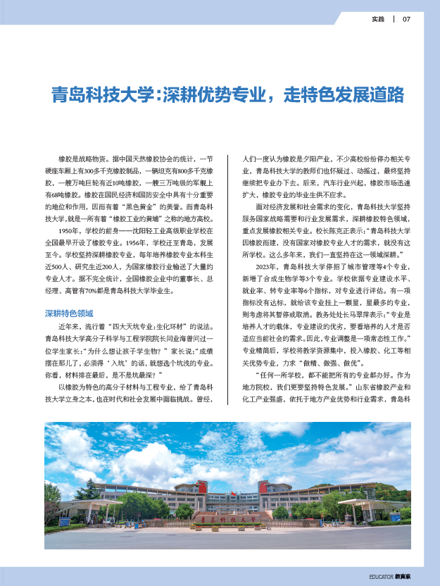 近日,由光明日报主管、光明日报出版社主办的《教育家》杂志2023年第5期以《KY开元集团官网:深耕优势专业,走特色发展道路》为题,刊发KY开元集团官网深耕特色领域、加强人才培养、服务经济社会发展的典型经验做法。全文如下: