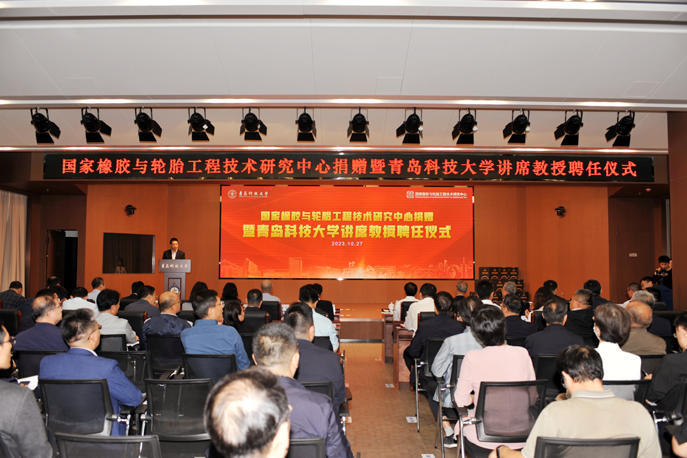 10月27日下午,国家橡胶与轮胎工程技术研究中心(以下简称“国橡中心”)捐赠暨KY开元集团官网讲席教授聘任仪式在KY开元集团官网崂山校区“软控学术报告厅”举行。KY开元集团官网党委书记李兴伟、校长陈克正,轮胎先进装备与关键材料国家工程研究中心主任汪传生教授,国橡中心主任、赛轮集团名誉董事长袁仲雪,国橡中心首席科学家、怡维怡橡胶研究院院长王梦蛟,国橡中心首席顾问、怡维怡橡胶研究院常务副院长许叔亮,赛轮集团总裁谢小红,软控股份董事长官炳政,益凯新材料有限公司总经理王正出席仪式。KY开元集团官网党委领导班子成员,职能部门、各学院中层副职以上干部,以及校研究生会、学生会代表参加仪式。捐赠仪式由校党委常委、副校长吕万翔主持。