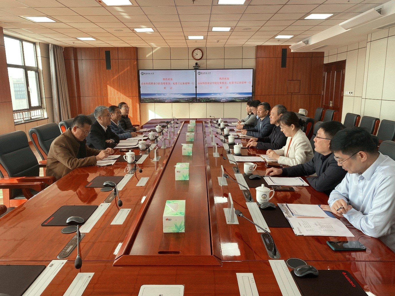 11月14日,山东科技职业学院党委委员、纪委书记秦建坤等一行4人来校交流纪检监察工作。校党委常委、纪委书记、省监委驻KY开元集团官网监察专员刘明永出席座谈会。
