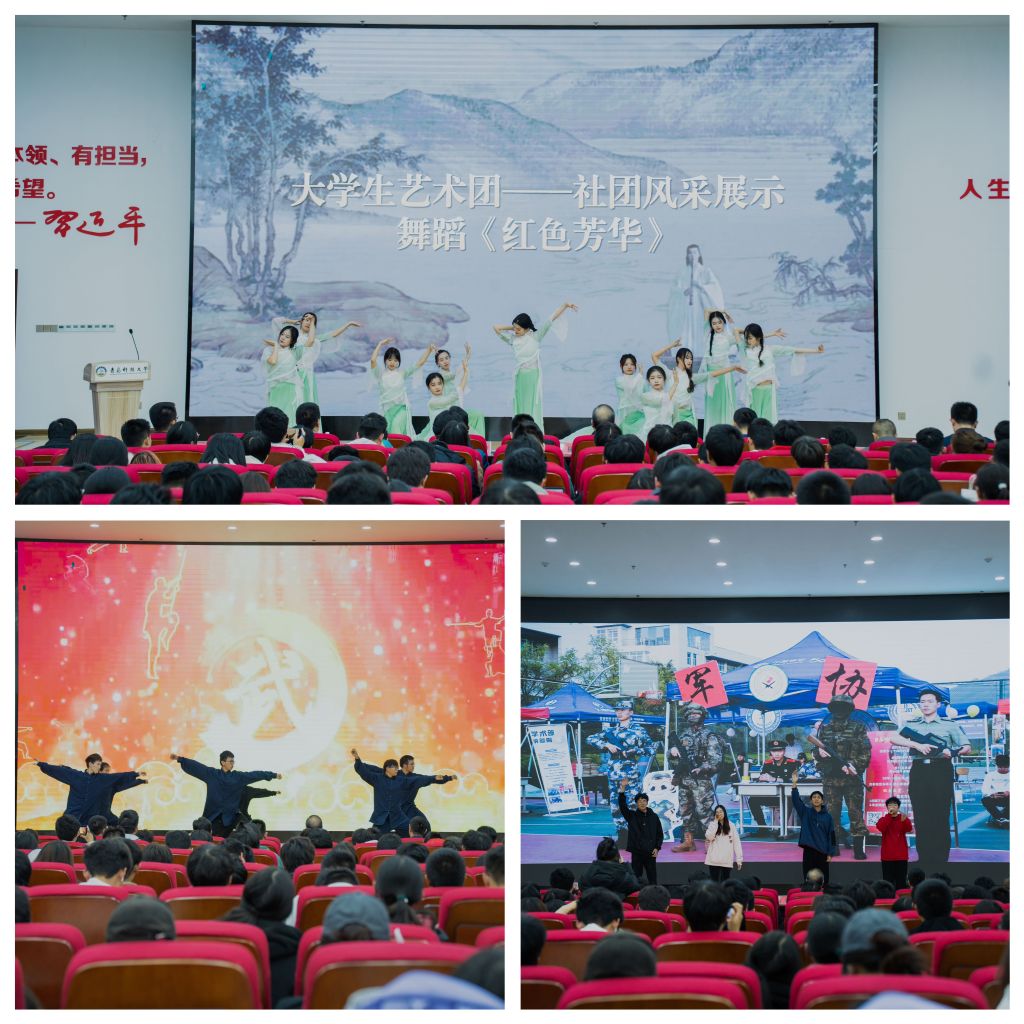 活动中,大学生艺术团、弈剑阁陈式太极拳协会、音乐爱好者协会等优秀学生社团分别带来了形式多样的社团风采展示。