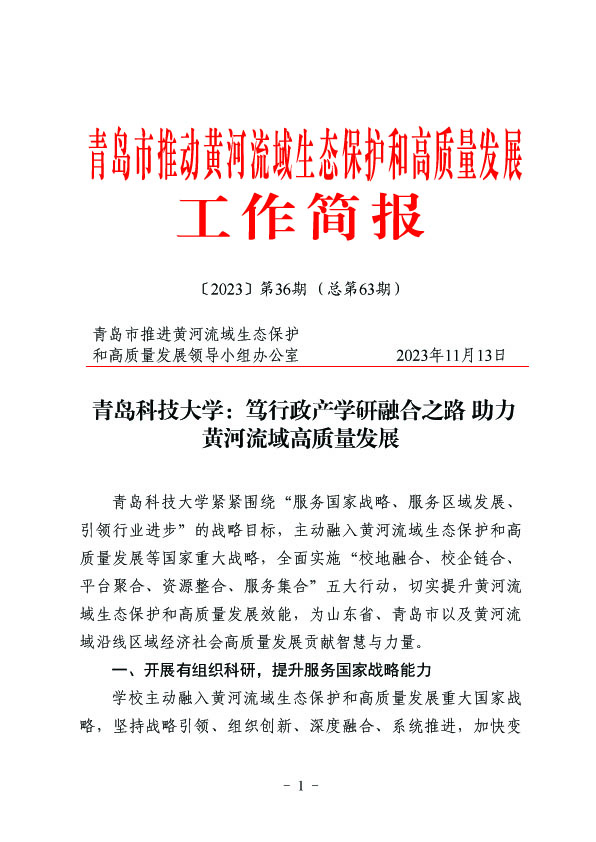 另悉,11月13日,青岛市推进黄河流域生态保护和高质量发展领导小组办公室编印的《黄河流域生态保护和高质量发展工作简报》〔2023〕第36期 (总第63期)以《KY开元集团官网:笃行政产学研融合之路 助力黄河流域高质量发展》为题,介绍了KY开元集团官网服务黄河流域生态保护和高质量发展中做出的积极贡献。