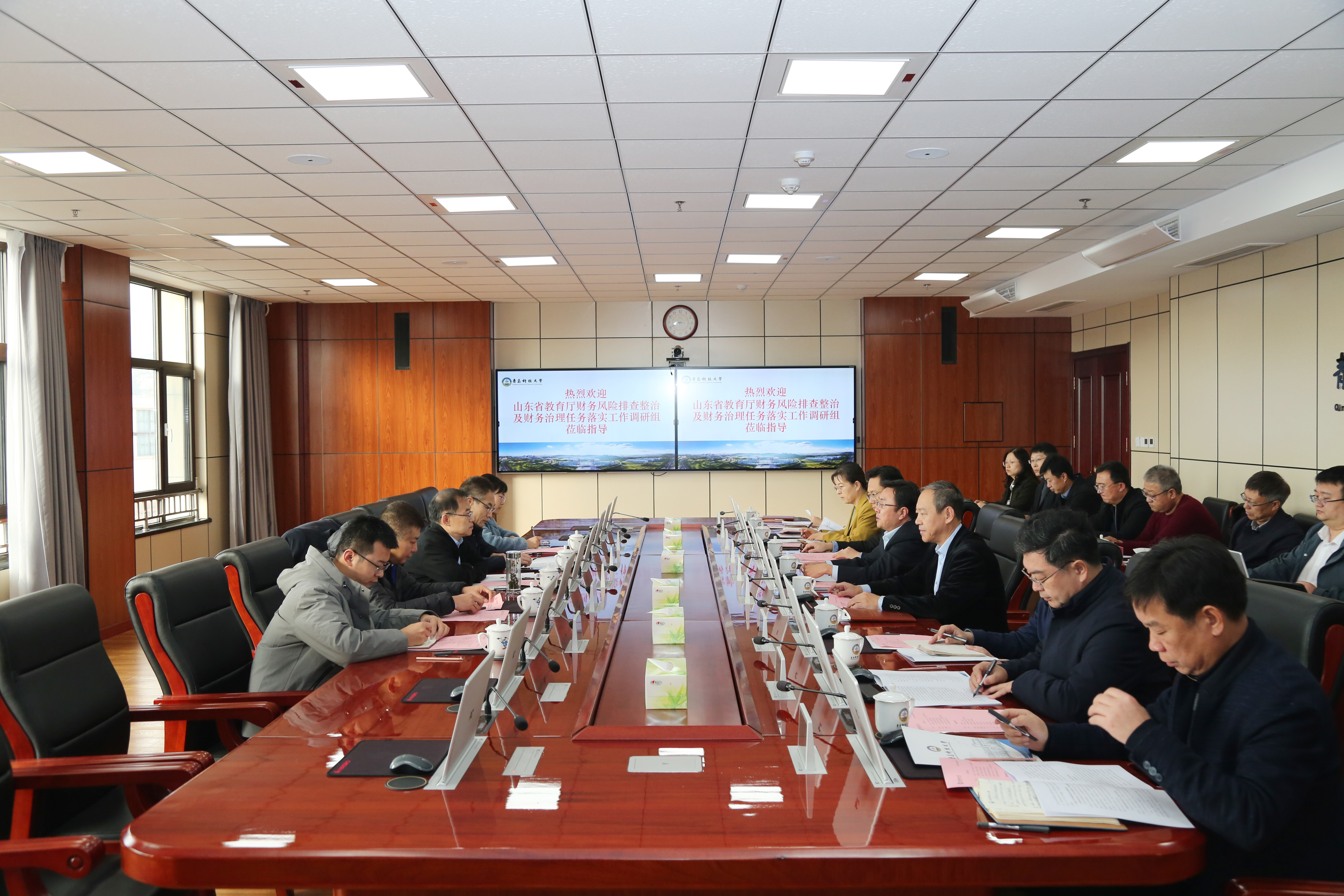 王宇轩对学校近年来的发展表示赞赏,对学校财务工作取得的成绩给予充分肯定。他指出,此次调研是根据山东省教育厅和山东省财政厅相关文件的要求,旨在加强高校财务治理,发现存在的问题,以防范财务风险,确保高校的事业顺利发展。同时,财务治理是学校治理的重要支柱,在高校高质量发展中扮演着至关重要的保障作用。