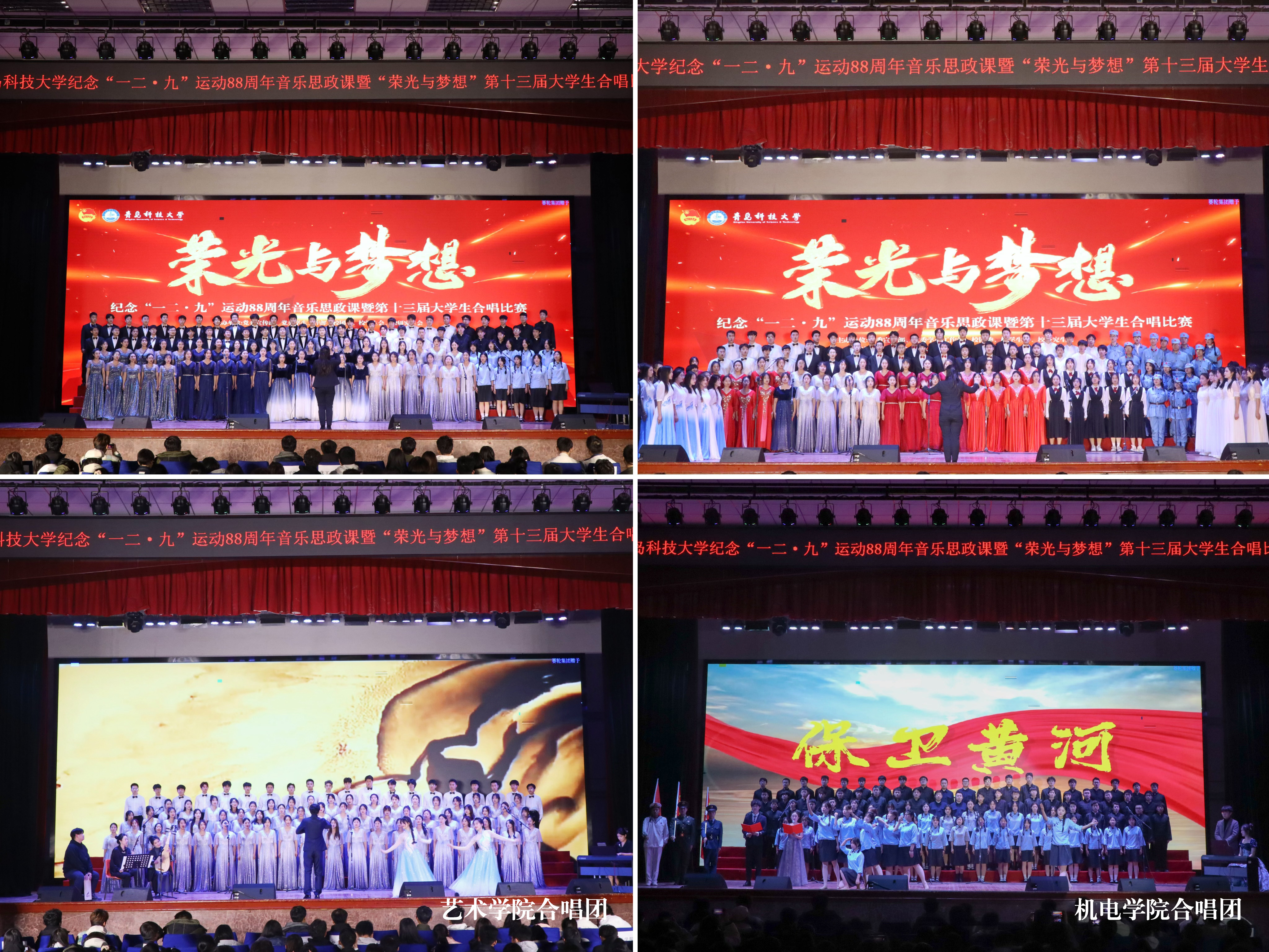 为进一步加强青年学生爱国主义教育,激发青年学生爱校荣校情怀,12月5日和9日,学校纪念“一二·九”运动88周年音乐思政课暨“荣光与梦想”第十三届大学生合唱比赛预决赛、总决赛分别在崂山校区第二报告厅、四方校区西礼堂举办。学校党委常委、副校长丁林,党委常委、宣传部部长张洪坤,党委常委、统战部部长秦姣出席活动。学校相关部门负责人、各学院相关负责人、青年学生代表2500余人参加活动。