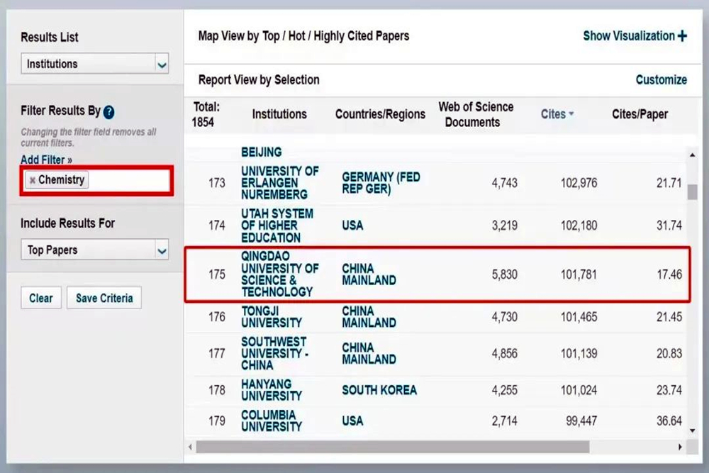 三、化学学科进入ESI全球排名前1‰