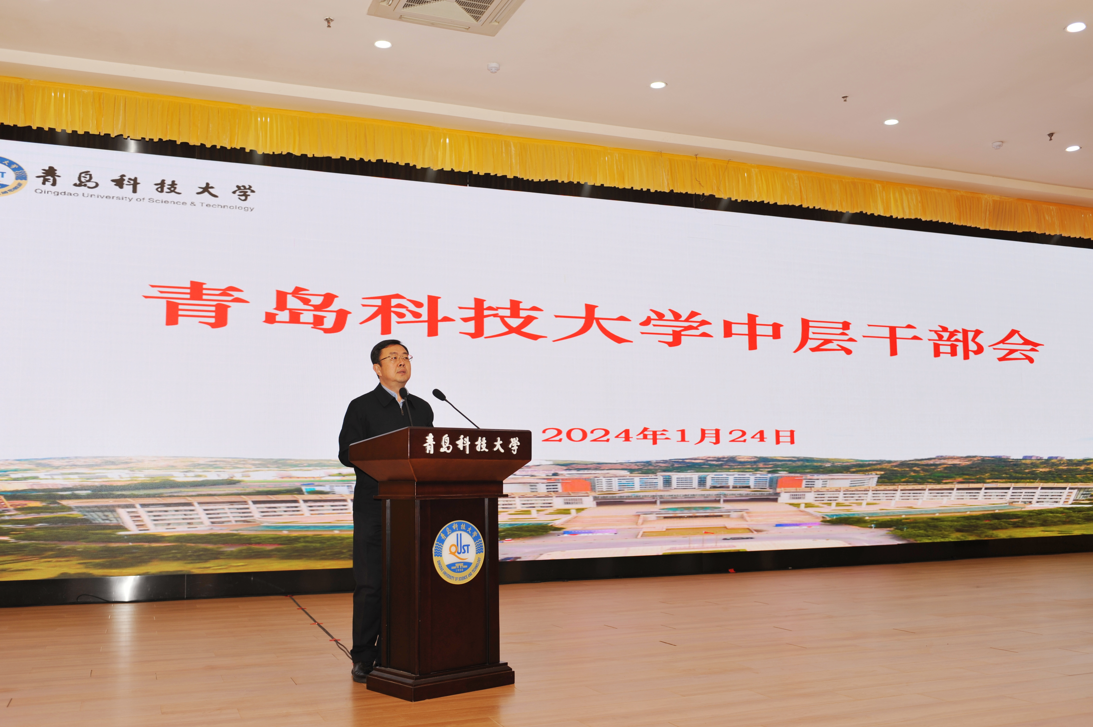 1月24日上午,学校在崂山校区第二报告厅召开中层干部会,党委书记李兴伟主持并讲话,校长陈克正对2023年工作进行总结并部署2024年工作,学校领导班子成员出席会议。