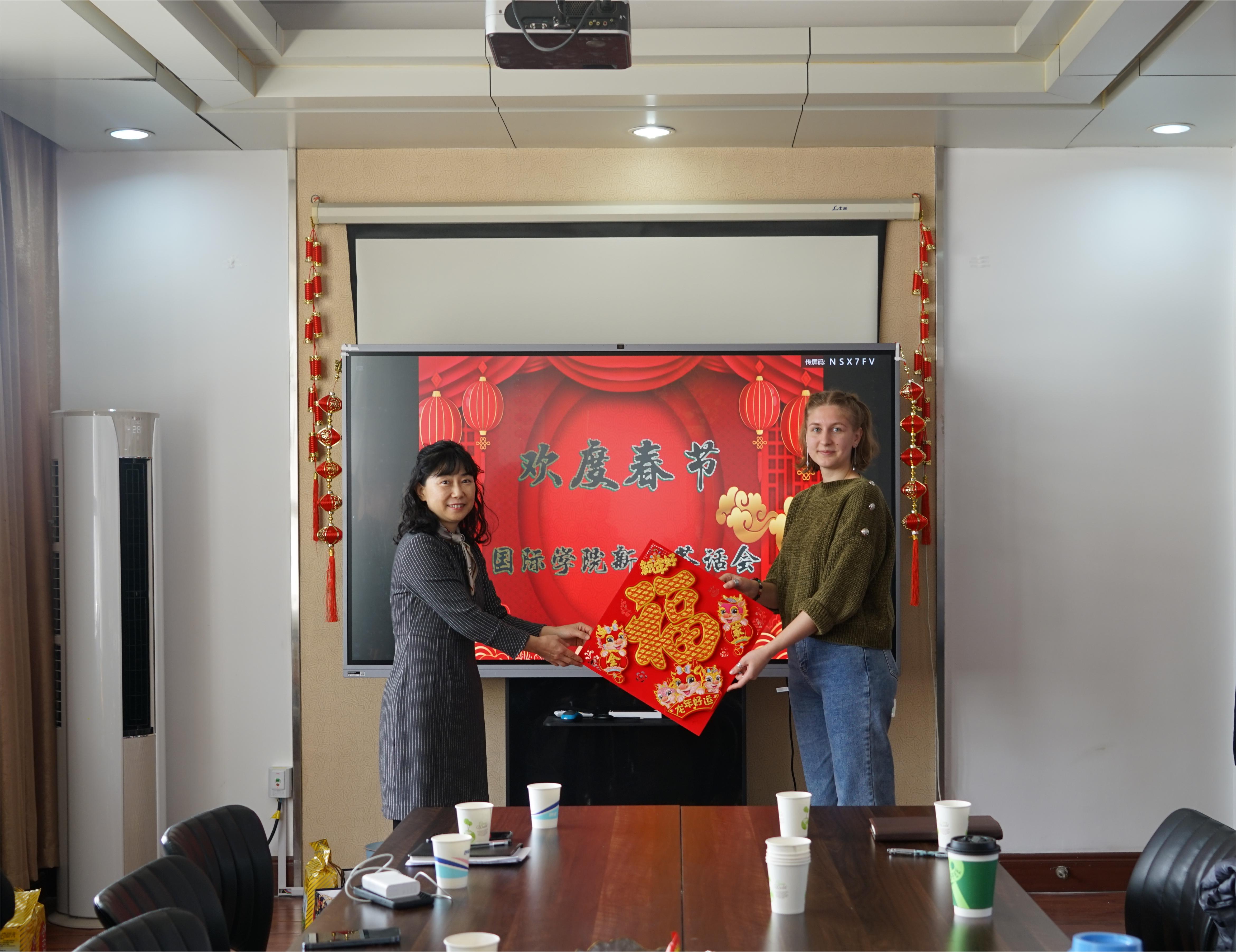 2月8日上午,学校党委副书记沈文青代表学校党委亲切看望在校留学生,为他们送上节日问候和新春祝福,并与留学生代表开展新春茶话座谈交流。