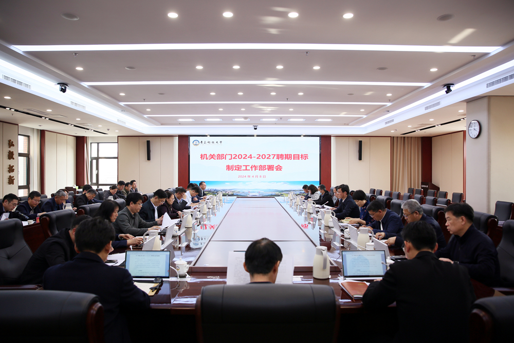 4月8日下午,机关部门2024-2027聘期目标制定工作部署会在崂山校区综合服务楼赛轮会议室召开,党委常委、副校长罗细亮出席会议并讲话。会议由党委(校长)办公室主任毛常明主持。