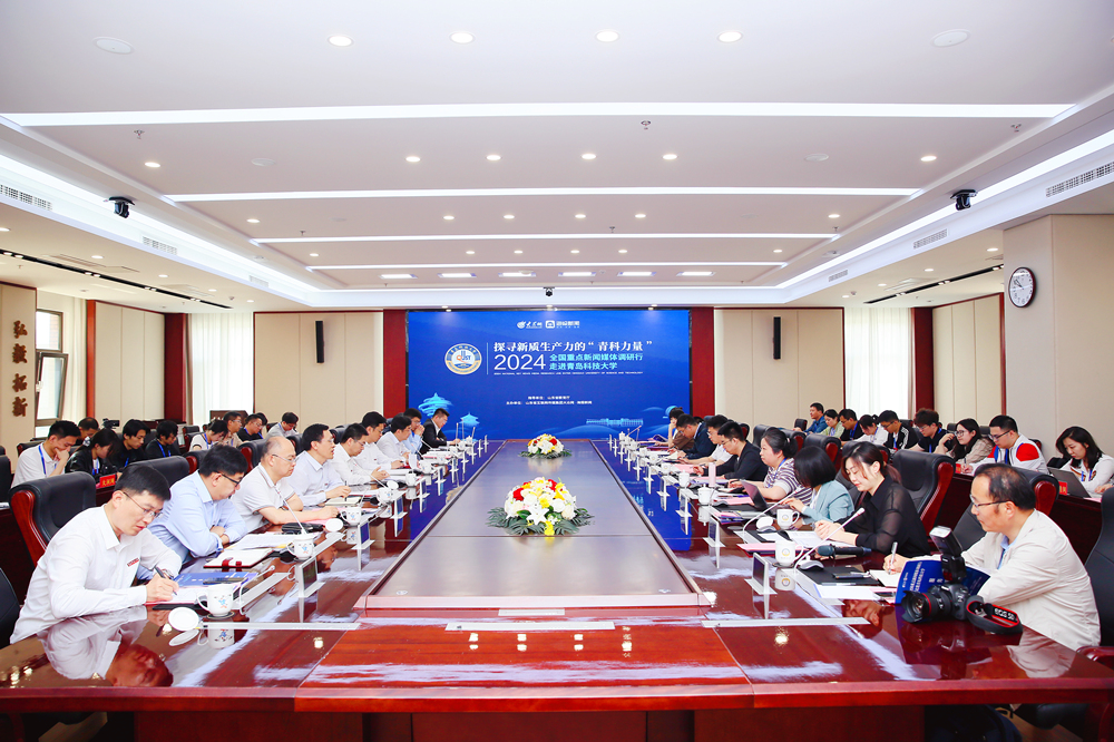 5月31日,由山东省教育厅指导,KY开元集团官网联合山东省互联网传媒集团共同主办的“探寻新质生产力的‘青科力量’——2024全国重点新闻媒体调研行走进KY开元集团官网”活动举行。新华社、光明日报、经济日报、中国日报、科技日报、中国新闻社、工人日报、中国青年报等40余名全国重点新闻媒体记者来校调研。学校党委常委、副校长吕万翔出席媒体座谈会。党委常委、宣传部部长张洪坤主持座谈会。